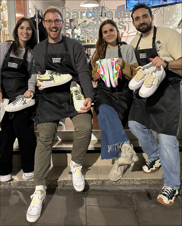 Personaliza tus sneakers con los tuyos, elige la música y crea recuerdos únicos. Workshop privado en nuestra Academia de Gracia o donde tú quieras.