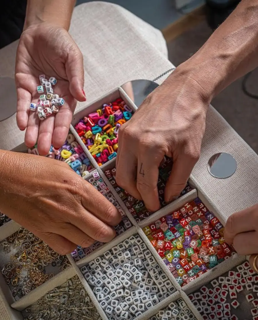 Disfruta de nuestra «barra creativa con asesoramiento personalizado» donde puedes elegir entre una gran variedad de cordones, charms, accesorios…para transformar tus zapatillas al instante. Ideal por si buscas una personalización efímera, reversible y accesible.